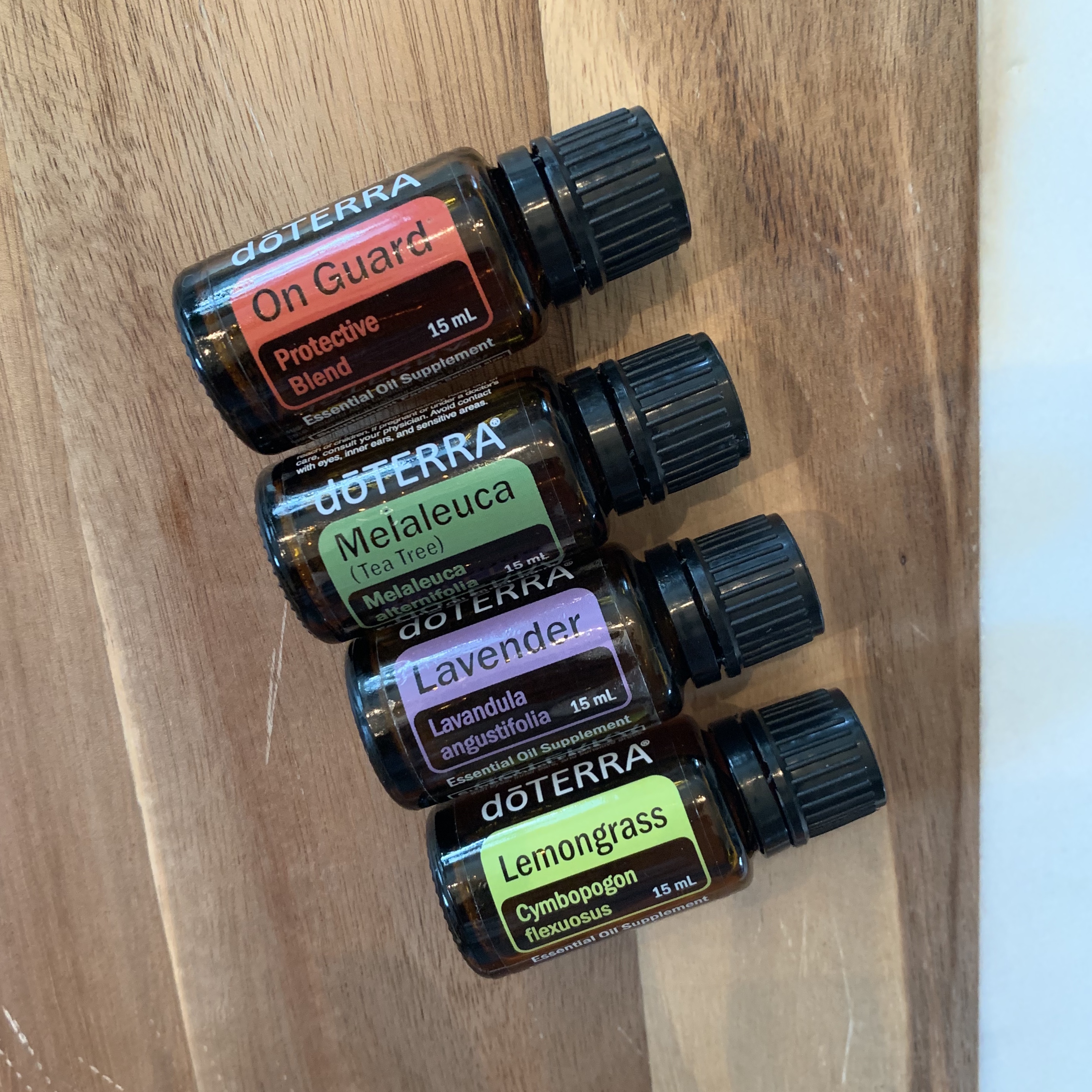 ✔ To a 10-mL roller bottle, add 10 drops of each of the following essential oils--OnGuard, Tea Tree, Lavender, and Lemongrass.